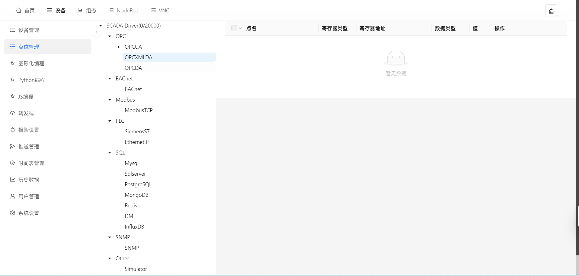 库)、InfluxDB)、SNMP、Simulator; - 转发端支持OPC UA服务器、MQTT、InfluxDB时序数据