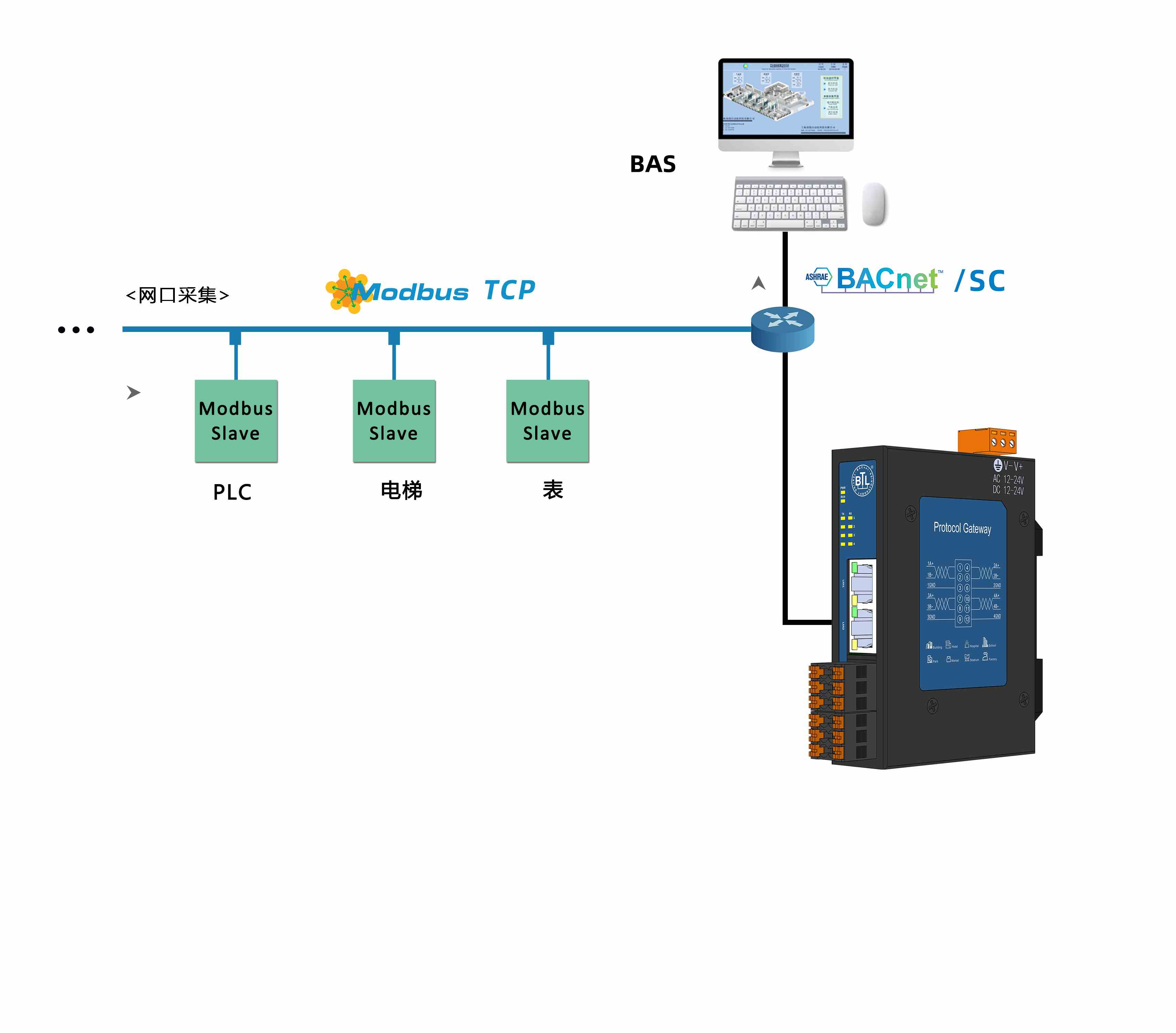 场景二、采集网口协议(如ModbusTCP)到BACnet/SC